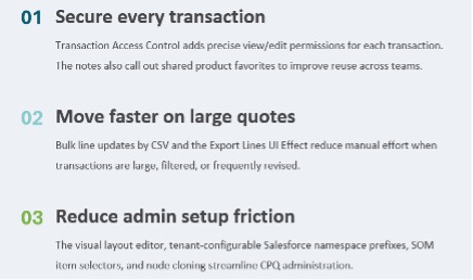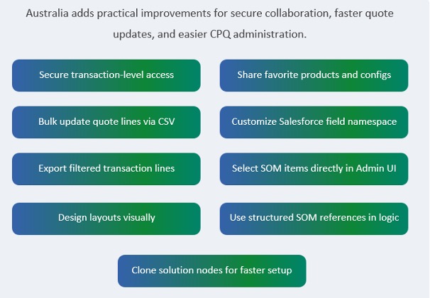 das Australia Release von ServiceNow bringt praktische Innovationen für CPQ. Anstatt alles auf einmal zu ändern, konzentriert sich die Version auf die Bereiche, die für Vertriebs- und Verwaltungsteams am wichtigsten sind: verbesserte Zugriffskontrolle, schnellere Transaktionsaktualisierungen, einfachere Exporte, intuitivere Layoutverwaltung und bessere Wiederverwendung von Produktkonfigurationen. Für Unternehmen, die von der Zurich-Version upgraden, ist dies eine Version, die die Ausführung verbessert, ohne größere Störungen zu verursachen.